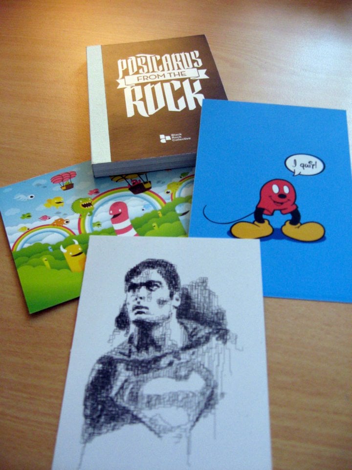 Here it is folks, the Black Rock Collective's very first postcard book! Ranging in style and in content these postcards represent one piece of personal art from 30 members of the multinational, multitalented, multi-awesome collective.
