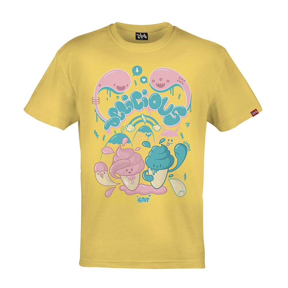 Food is the perfect sin, it’s neutral and has existed as long as has civilization. Here we have two retro dancing cupcakes in bright pastels leading the way down this mired path. Show your love of cupcakes and of bright colors and buy this shirt today!