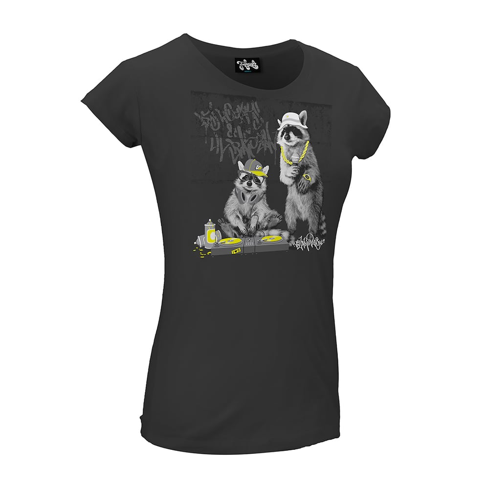 Coons, you know, they get a bad rap. People think of them and their trash-eating ways, but they never consider the many great contributions which racoons have made to society. When not starring in hit comedies for children, racoons are left to the streets and their own devices. What do you expect, gainful employment and tax-paying? Such is simply not in the raccoon Guide to Daily Living. Raccoons, like any of us, are just doing the best they can, and there’s no one to blame, and they usually make no effort to hide. Because time never waits and it doesn’t matter what that’s supposed to mean. Give your support to DJ Rocky and his best friend, buy this shirt today!
