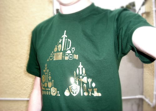 Printed with Ultra gold shimmer ink on a premium black tee.